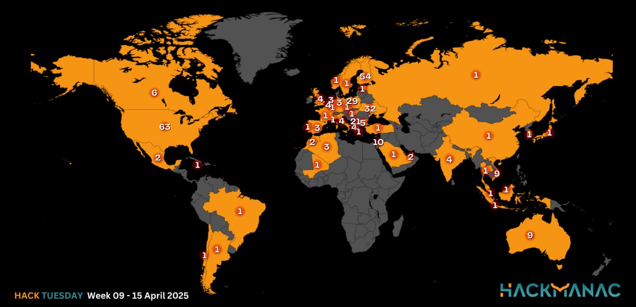 ➡️ USA es el país más afectado con 63 ciberataques cada uno.